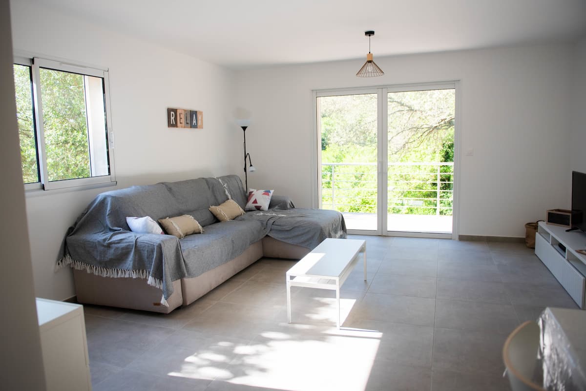 At the entrance of a small typically Corsican hamlet in a quiet area while being close to the first amenities, the first beaches 15 minutes away, the mountains and the rivers 40 minutes away.
